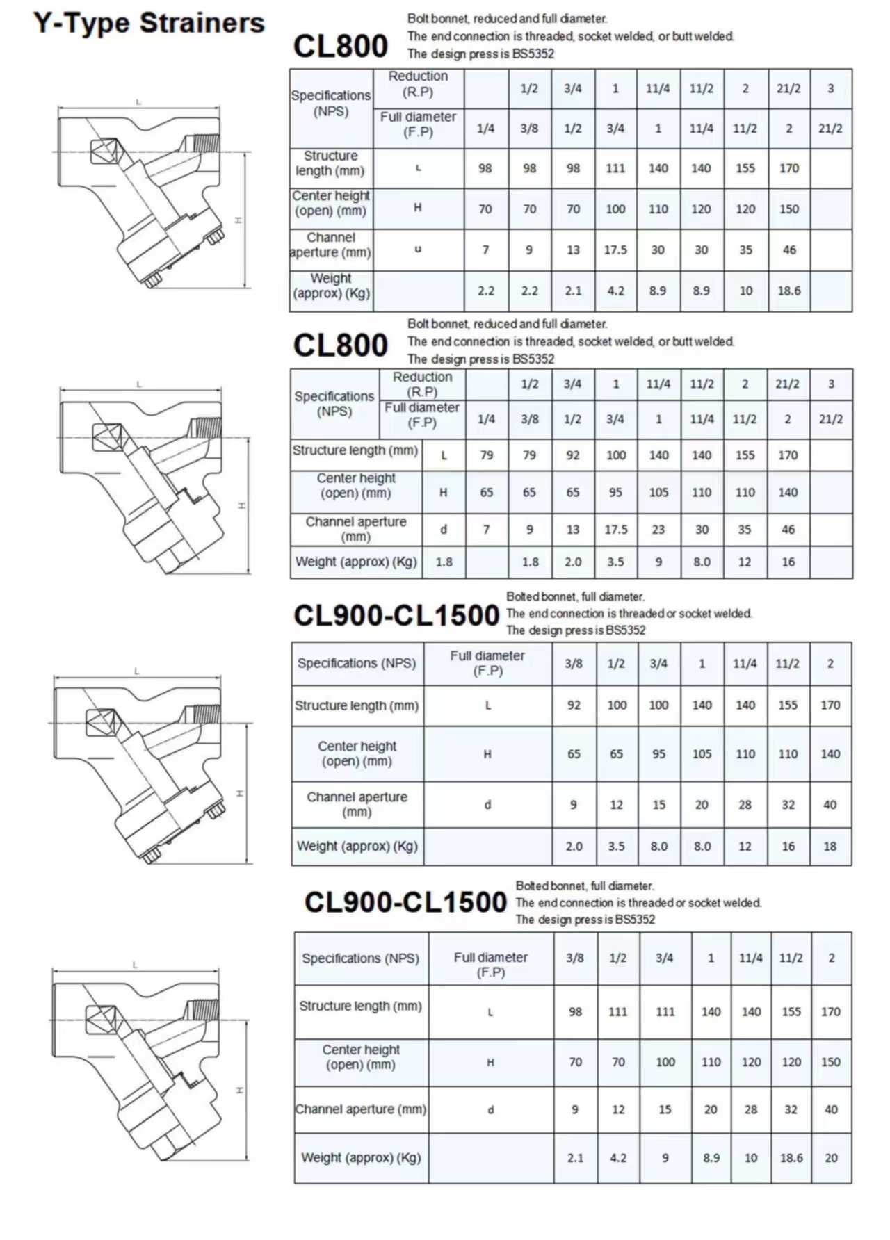 CL600-1480P.S.1@100°F CL800-1975P.S.I@100°F